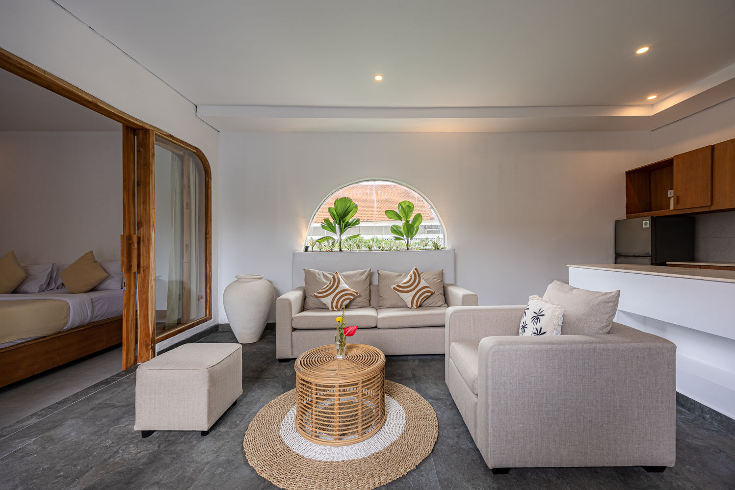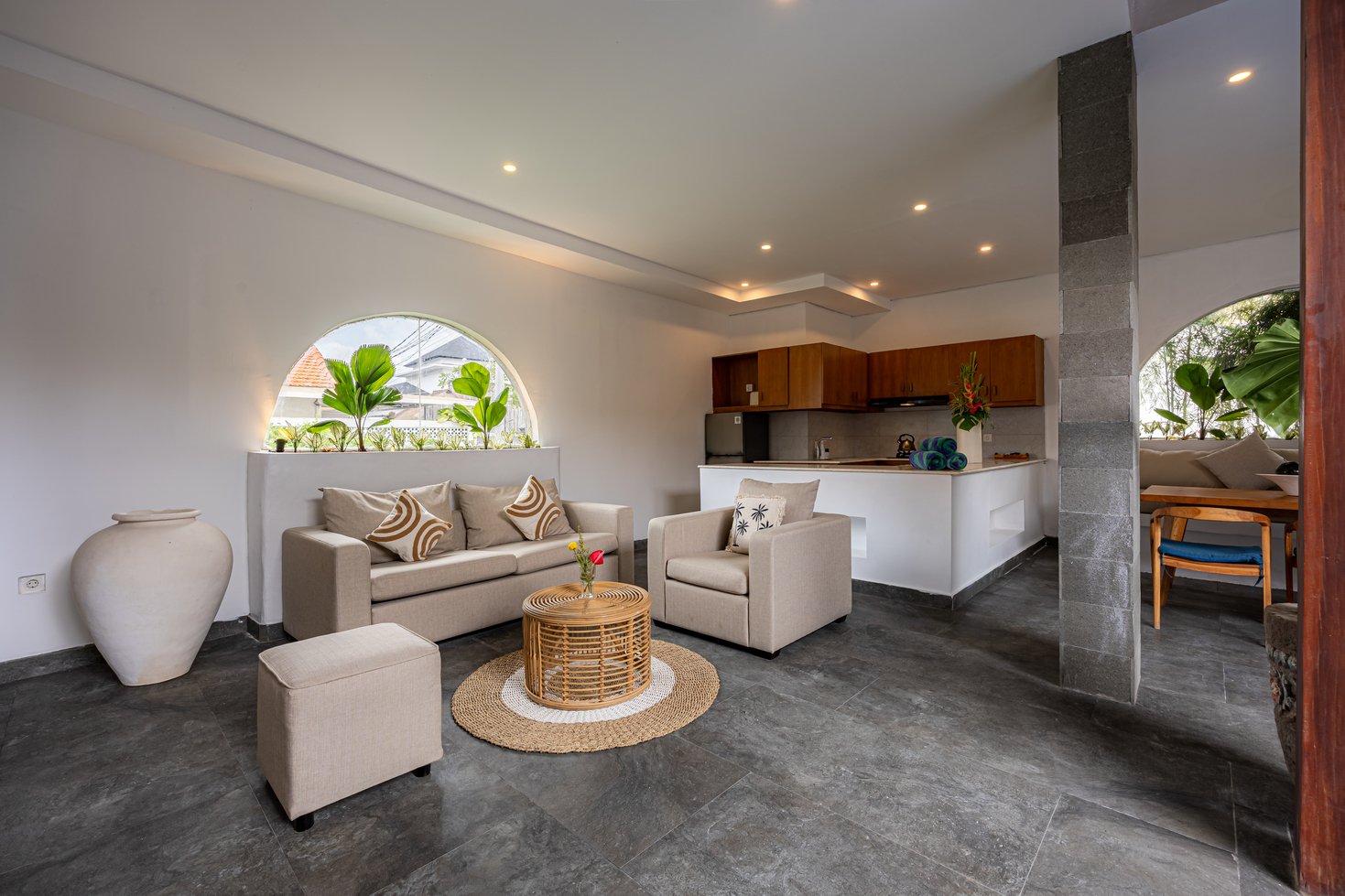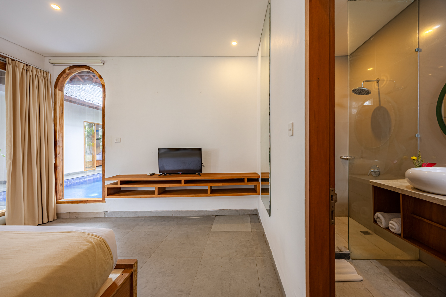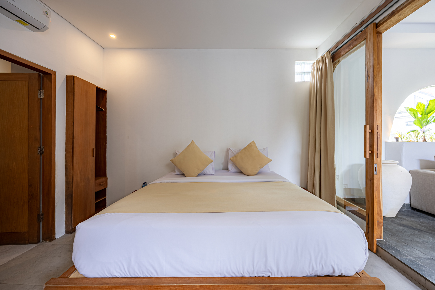 Apple Villa unit is fitted with flat screen satellite TV, DVD player and air conditioning, it also equipped with terrace & private pool and seating area. There is a full kitchen with microwave, refrigerator, toaster, complete with dining area, fully kitchen utensils. Outdoor furniture featuring a shower. The guest can enjoy pool view and tropical garden.