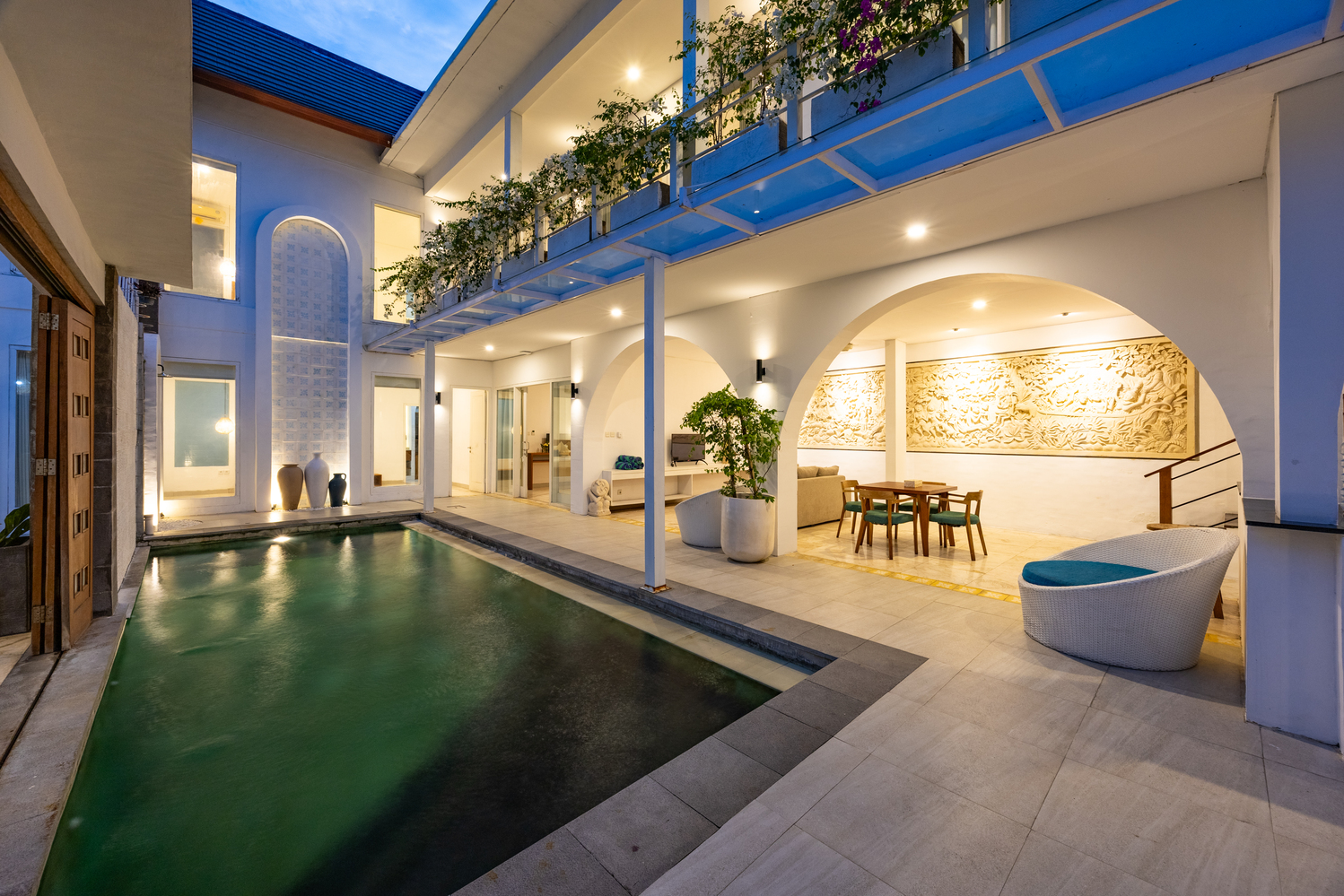 An exquisite 5 bedrooms designed by modern concept (300 m2) private swimming pool (32m2) with unique rattan sun lounges, spacious terrace (32 m2) and relaxation living room.