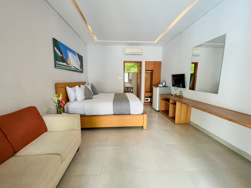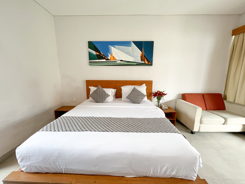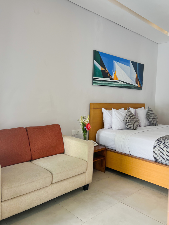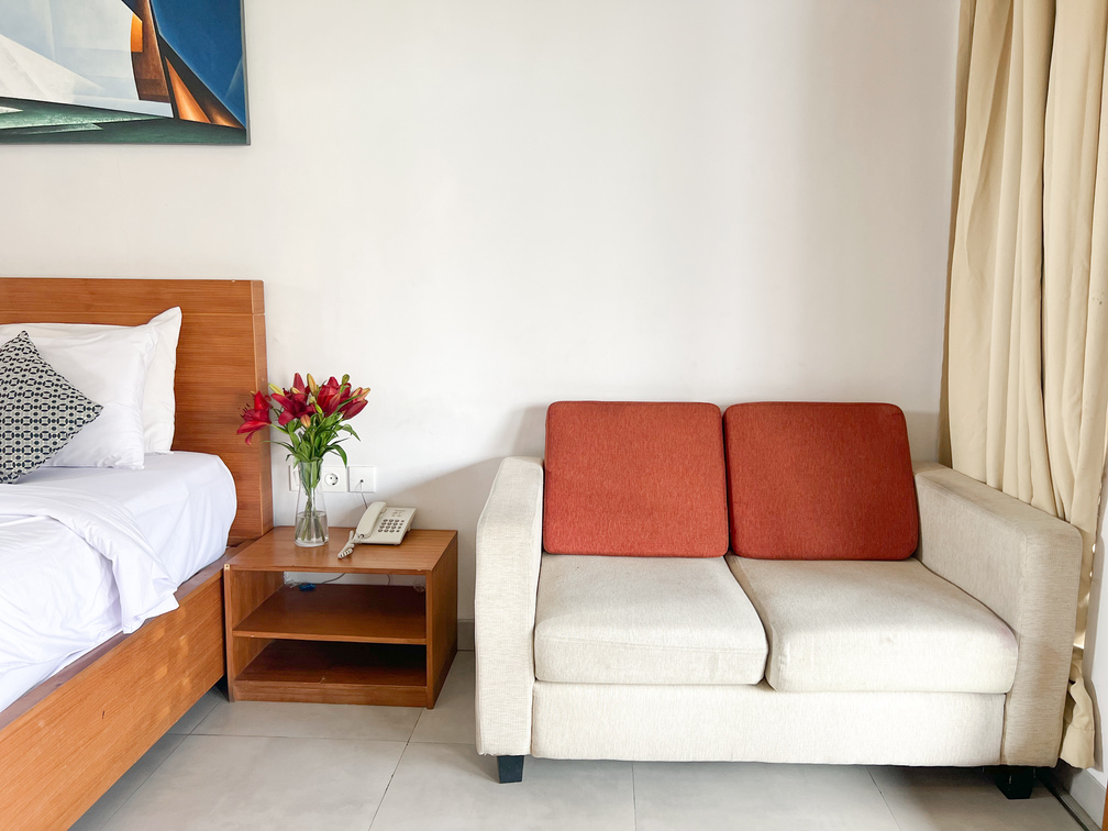 Studios units (32 sqm) are deally located, specios and have quality furnishing, fixturing, and fitting. refregerator, deal phone. these room are comprized of a bedroom with king size bed or two single beds and including sofa and a table coffee make our guest comportable.